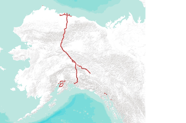 Location of the Trans Alaska Pipeline across eastern Alaska